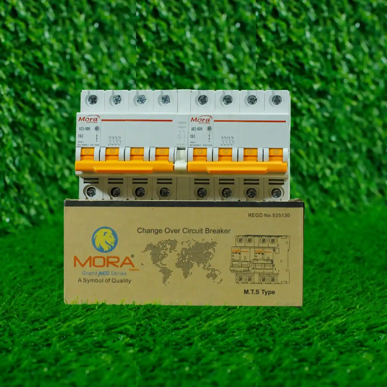 Mora 63A dual power manual transfer switch with 4P+4P design. Ideal for 3-phase changeover between two AC sources like grid & generator. MCB type switch, 50Hz/60Hz compatible.